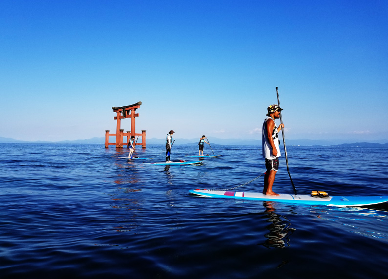 ボードの上に立ち、パドルを漕いで水面を進んでいく新感覚のアクティビティ。安定感抜群の浮力のある専用ボードで性別や年齢を問わず初心者でもすぐ楽しめます。全身の体幹やバランス感覚を鍛えられることから、エクササイズとしての効果も!